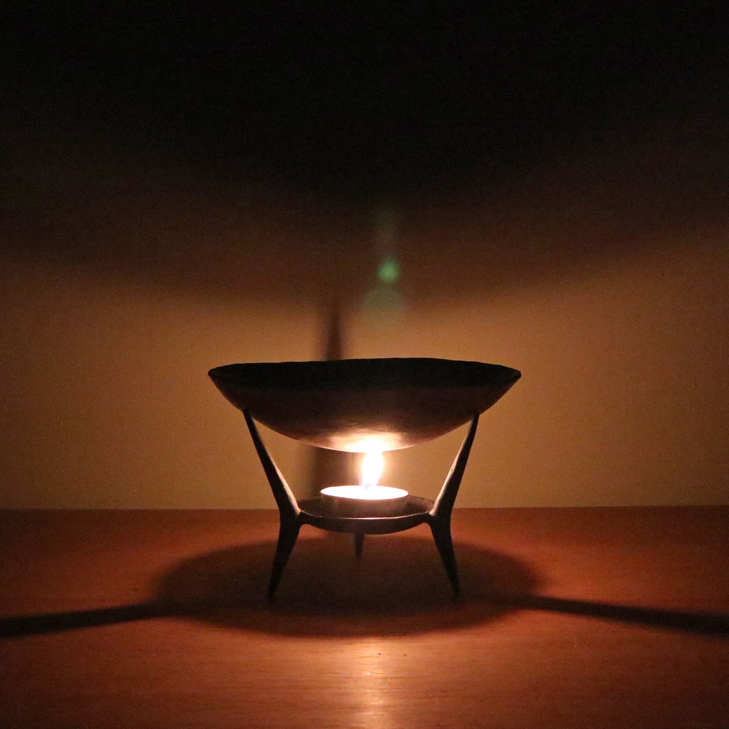 ※こちらの作品は市販のティーライトキャンドルに合わせて炎の高さを調整してあります。サイズの大きなキャンドルはお使い頂けませんのでご了承ください。